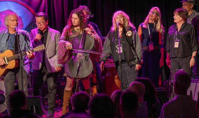 The evening began with the sounds of Emma Botti whose voice, a beacon of warmth and emotion, charted an upbeat course for the night ahead. Throughout the concert, we heard songs from Ron Artis II, Joan Baez, Banana aka Lowell Levinger, Jason Crosby, Dirty Cello, Ramblin' Jack Elliott, Jeffrey Halford, Gabe Harris, Jasmine Harris, Kurt Huget, Matt Jaffe, Maria Muldaur and Tony Saunders. Each artist brought their own unique connection to the organization, weaving a tapestry of songs that celebrated Bread & Roses’ rich history.